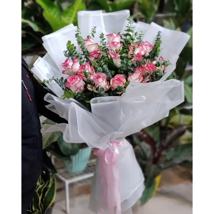 مناسبت/پیام: صورتی = تحسین و قدردانی، سفید = پاکی و آغاز نو؛ ترکیب مناسب برای خواستگاری و اعلام نیت جدی.
