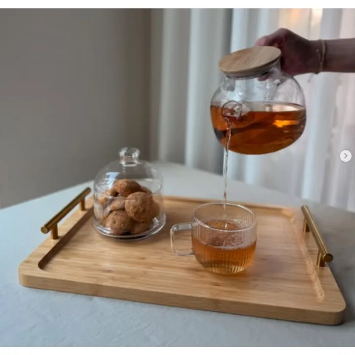 سینی بامبو را با دستمال مرطوب و کمی مایع ملایم پاک کرده و سریع خشک کنید. قوری و لیوان پیرکس و کندیبلوری را با اسفنج نرم و مایع ظرفشویی بشویید. استفاده از اسکاچ زبر توصیه نمیشود.
