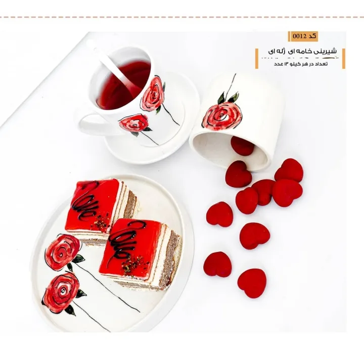 | دکور | گلیز قرمز آینهای + نوشتۀ کوتاه/اسپرینکل آجیلی |