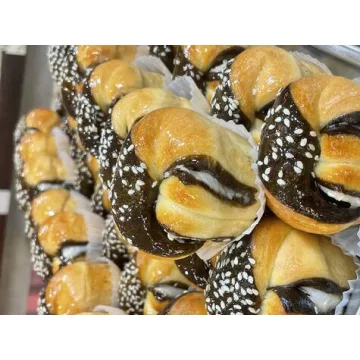 شیرینی شکلاتی کاراملی مجلسی – شیرینیای خاص و خوشعطر با ظاهری پیچخورده و لعاب براق، ترکیبی از نرمی خمیر و طعم دلپذیر شکلات تلخ و کارامل.