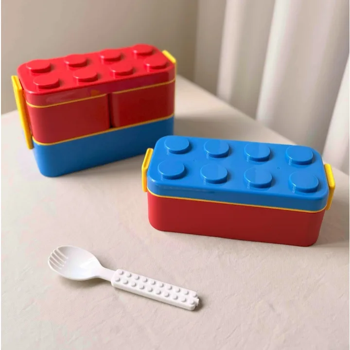 ظرف غذای لگویی دوطبقه؛ پلاستیک فشرده مناسب مدرسه