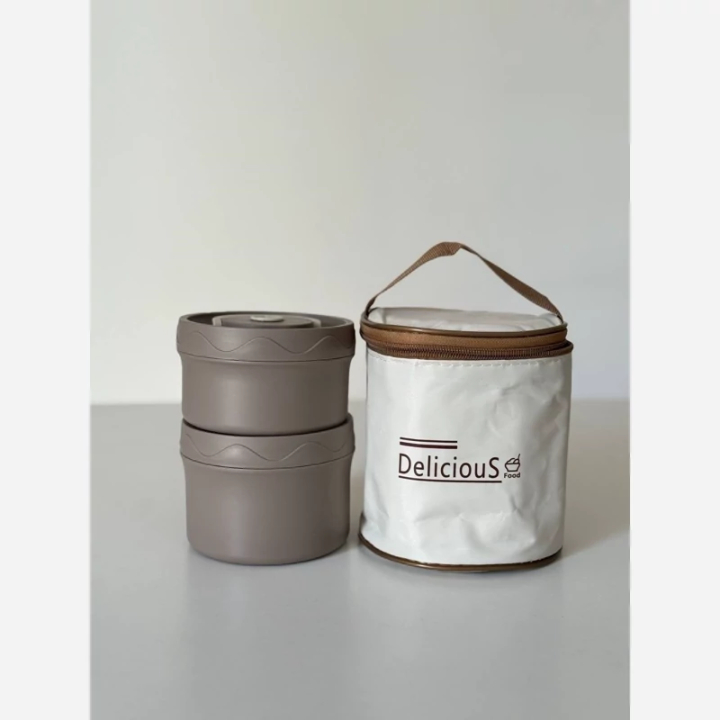 یک ظرف غذای شیک، تمیز و بهداشتی برای محل کار، دانشگاه، مدرسه و سفر. بدنه بیرونی از پلاستیک فشرده و لایه داخلی از استیل 304 غذایی ساخته شده تا بو نگیرد، رنگ ندهد و شستوشو آسان باشد. دو مخزن ۵۵۰ و ۷۵۰ میلیلیتری امکان تفکیک غذا (برنج/خورش، سالاد/پروتئین و…) را میدهد. کیف برزنتی زیپدار، حمل را تمیز و مرتب کرده و به حفظ دما در مسیر کمک میکند. پک قاشق و چاپاستیک همراه، ست را کامل میکند.