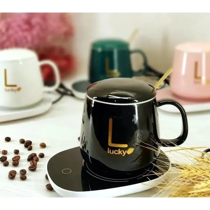یک ماگ سرامیکی خوشدست بههمراه گرمکن رومیزی (هیتردار) برای اینکه