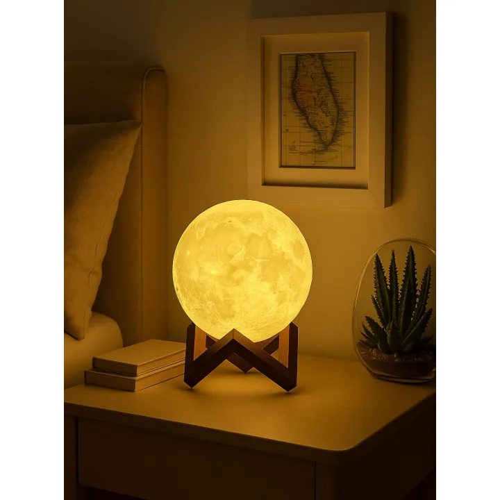 چراغ خواب کره ماه 3D – نور گرم دیمر USB-C برای اتاق خواب و کودک