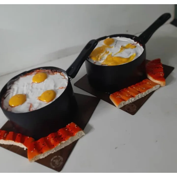 | طراحی ظاهری | مدل نیمرو در ماهیتابه واقعی با نان تزئینی |