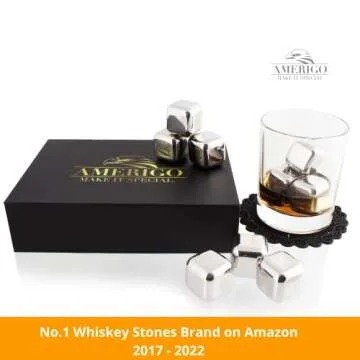 Show more Experience the ultimate in whiskey enjoyment with our Exclusive Whiskey Stones Gift Set. Designed with the discerning whiskey enthusiast in mind, this luxurious set offers an innovative solution to enjoy your favorite drinks without dilution. The set includes durable stainless steel whiskey rocks that chill your drink to perfection while maintaining its rich flavors. Complementing this are stylish coasters and an easy-to-use ice tongs, providing both form and function for a complete whiskey-drinking experience.