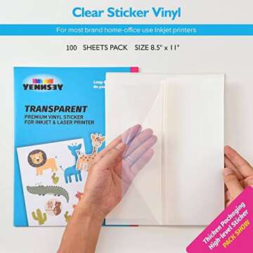 (100 Sheets) Semi Super Clear Sticker Paper for Inkjet Printer-Transparent-8.5 x 11-Printable Vinyl Sticker Paper for Circut-Printable Sticker Paper-Weatherproof-Adhesive-Clear Sheets-Clear Labels