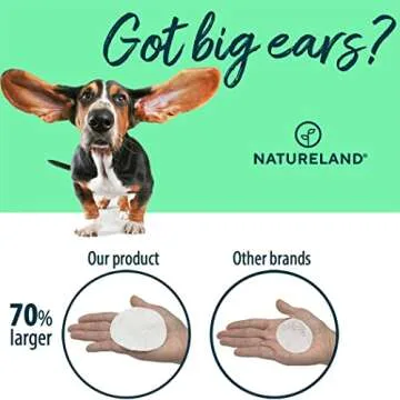 [150 pcs Extra-Large] Natureland Dog Ear Wipes - Extra Large Pads [170%] - Otic Cleaning Wipes for Infections and Controlling Ear Infections and Ear Odor in Pets