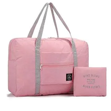 (2 Pack) Foldable Travel Duffel Bag, Waterproof Carry On Luggage Bag, Lightweight Travel Luggage Bag for Sports, Gym, Vacation (Light blue & Light pink)