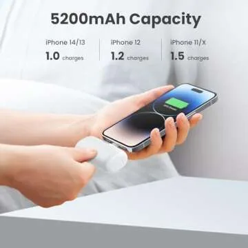 Show more Introducing the **2-Pack 5200mAh Portable Charger for iPhone**, your ultimate solution for on-the-go charging. Designed exclusively for iPhone users, this ultra-compact and lightweight power bank offers a slick, hassle-free charging experience without the complication of extra cords. Weighing only 0.19lb and measuring a mere 27*53*82mm, this mini power bank easily slips into your pocket or bag, making it the perfect travel companion wherever life takes you. The remarkable 5200mAh capacity provides a significant energy boost, fully charging your iPhone without missing a beat.