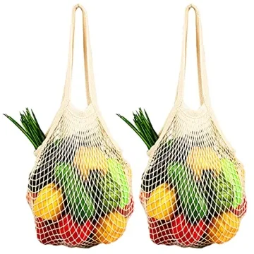Show moreDiscover the essence of eco-friendly shopping with our premium [2 Pack] Premium Mesh Grocery Bags. Designed with sustainability in mind, these reusable produce bags are made from 100% cotton, combining durability with style. Perfectly sized for carrying fruits and vegetables, they can support heavy loads of up to 40 pounds, making them your ultimate shopping companion. These stylish net totes not only reduce waste by replacing single-use plastic bags but also offer you a chic solution for carrying everything from groceries to beach essentials.