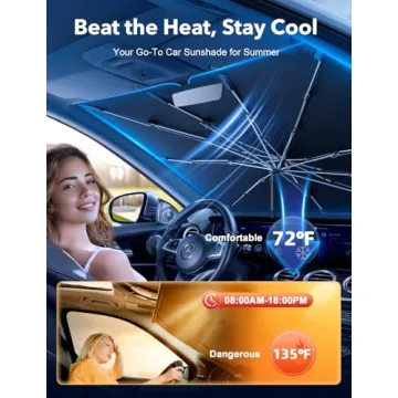 Show moreIntroducing the 2025 Premium Upgrade Car Windshield Sunshade Umbrella, the ultimate solution for beating the heat this summer! Engineered with cutting-edge Ice Crystal Cooling Material and a revolutionary T-Cool Coating, this sunshade doesn't just protect your vehicle from the harsh rays of the sun but also actively cools your car's interior. It effectively blocks heat, ensuring that your vehicle remains at a comfortable temperature range of 68-75°F, even on the hottest days. The exceptional design lowers interior temperatures by up to 100°F, making your daily drive far more enjoyable.