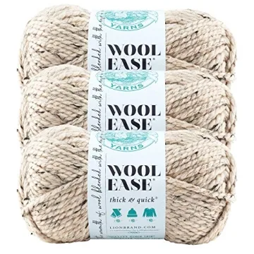 Lion Brand Wool-Ease Thick & Quick Yarn in Oatmeal with 3 Packs of Durable, Machine Washable Skeins