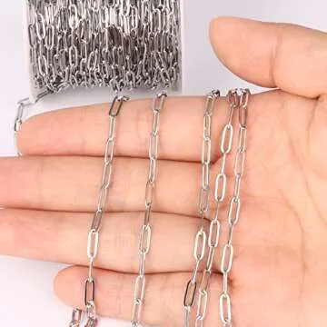 Show more If you’re looking to elevate your crafting experience, the Stainless Steel Paperclip Chain Roll is your ultimate resource. Crafted from premium 304 stainless steel, this incredible chain not only exudes elegance with its shiny silver color, but it also exhibits exceptional durability that stands the test of time. Spooling at an impressive length of 33 feet and a link width of 3mm, it provides a wealth of material perfect for a plethora of creative projects. Whether your aim is to make delicate charm necklaces or sturdy bracelets, this versatile chain serves as the ideal foundation for your artistic expressions.