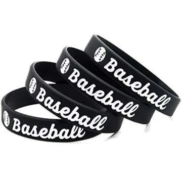 (4-Pack) Baseball Silicone Bracelets with Motivational Sports Quotes - Set of 4 Inspiring Silicone Rubber Wrist Bands - Unisex Baseball Gifts Jewelry Accessories for Men And Women