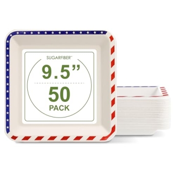 Harvest Pack 50 Count Patriotic Compostable Square Plates, Ideal for Celebrations