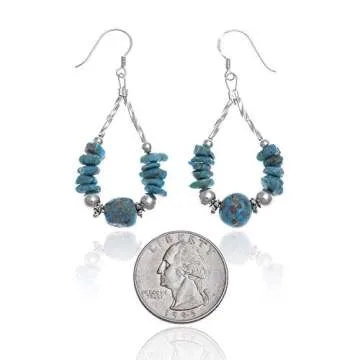 The earrings are made of silver alloy and feature hand-picked natural turquoise stones.