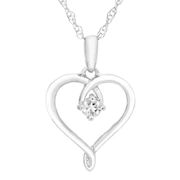 .925 Sterling Silver Natural White Sapphire Heart Pendant with 18" Chain
