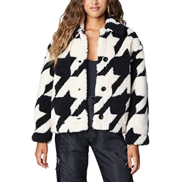 [BLANKNYC] Women's Faux Shepra Houndstooth Printed Coat Jacket - Chic & Versatile