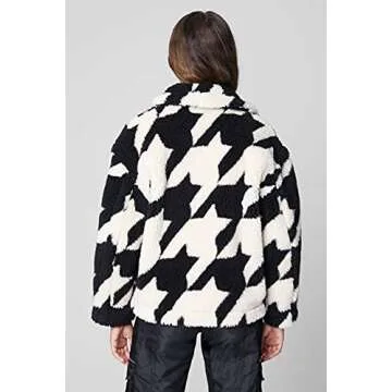 When stacked against competitors, the [BLANKNYC] Women's Faux Sherpa Houndstooth Printed Coat stands out thanks to its innovative design and high-quality construction. While other brands might offer similar looks, they often compromise on comfort or fabric quality. [BLANKNYC] combines fashion-forward style with the durability and softness of premium fabrics, ensuring you get the best of both worlds.