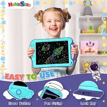[ClimatePartner Certified] HOMESTEC Astrodraw Drawing Pad, Colorful LCD Writing Tablet for Kids, Doodle Board for Toddlers 3 4 5 6 Years Old, Travel Toy Birthday Gift for Boys Girls (Aqua/Purple)