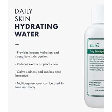 [DearKlairs] Daily Skin Hydrating Water, Toner, Jumbo 16.90 Fl Oz, Skin hydrating green tea essence