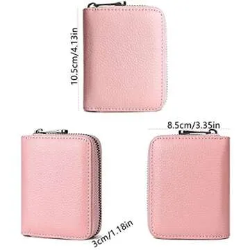 Show more Introducing the beautifully designed Genuine Leather RFID Blocking Wallet, a must-have accessory for anyone who values security and style. This wallet not only serves its primary function to hold and protect your cards, but it also does so with utmost elegance. Crafted from high-quality genuine leather, it features a striking pink hue, making it suitable for everyone, regardless of gender. With its accordion-style design and zipper closure, accessing your essentials has never been easier or more secure.