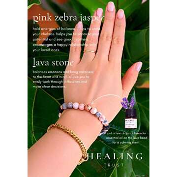 [Healing Trust] Pink Zebra Jasper & Lava Stone Essential Oil Diffuser Bracelet, 7 Inches, Pink