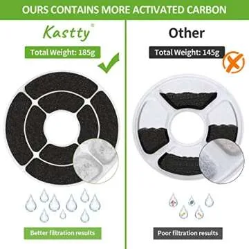 Compared to other brands, Kastty filters outshine with their superior carbon weight and precise fitting design. While other filters may fall short in filtration performance, Kastty ensures your pets always have clean, tasty water.