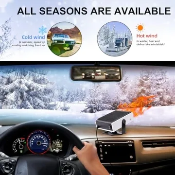 Show more If winter mornings have you stuck waiting for your car to warm up, the New 2025 Portable Car Heater is the game-changer you’ve been looking for. Designed for efficiency and practicality, this compact heater quickly delivers heat to defrost or defog your windows in less than a minute, ensuring a clear line of sight while driving. With its dual-function capability, you can enjoy warmth in winter and refreshing cool air in summer, making it an all-year-round essential. At just 5.5 by 4.1 by 2.7 inches, it’s not only portable but also conveniently plugs into any 12V car outlet without the need for batteries or extra cords.