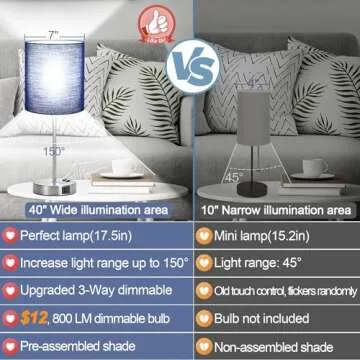 ๐ฎ๐ฌ๐ฎ๐ฏ ๐ก๐๐ช Set of 2 Touch Control Table Lamps with 2 USB & AC Outlet, 3-Way Dimmable Bedside Nightstand Lamps for Bedroom Living Room Nursery, 800 Lumens 5000K Daylight Bulbs Included