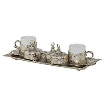 Show moreIndulge in the rich tradition of Turkish, Greek, and Arabic coffee with the exquisite Silver 16 Pieces Turkish Greek Arabic Coffee Set. This elegantly designed set includes everything you need to host a delightful coffee experience, making each cup a celebration. The set features beautifully crafted cups and saucers, a stunning copper pot, and a charming sugar bowl, each piece intricately designed to elevate your coffee rituals to new heights. The harmonious blend of functionality and artistry speaks volumes about your taste and appreciation for culture.