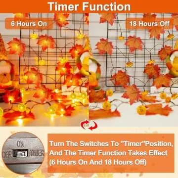 Compared to other decorative lights on the market, our patented maples leafed garland stands out with its unique design and functional timer. Competitors may offer battery-operated lights, but they often lack the charming seasonal touch that our pumpkins and leaves provide. Some competitors have blinking options, but we focus on elegance and warmth without the distraction of flashing lights, making our garland a perfect choice for tranquil settings.