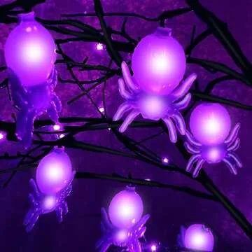 [Timer] 5.5 Ft High Halloween Lighted Tree Decor Black Spooky Tree with 96 Purple LED Lightes and 24 DIY Spiders Ornaments Halloween Outdoor Tree for Indoor Home Decorations(4 Ground Stake/Adapter)
