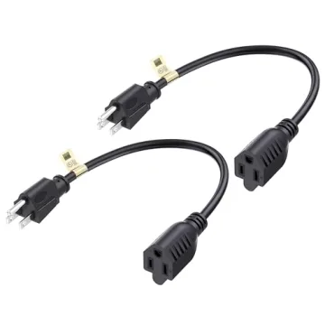 Cable Matters Heavy Duty 1ft Extension Cord - 2 Pack 16 AWG 13A Power Cord
