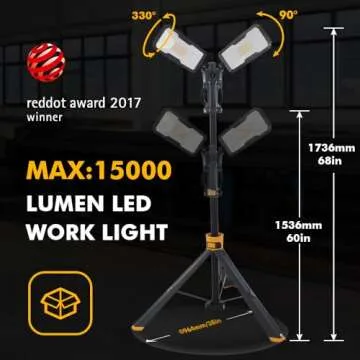 【Upgraded】 LUTEC 6290Max 15000 Lumen 138W Dimmable LED Work Light with Telescoping Tripod, Adjustable Color Temperature Dual-Head Work Light with Stand and 8 Ft 3-Prong Power Cord