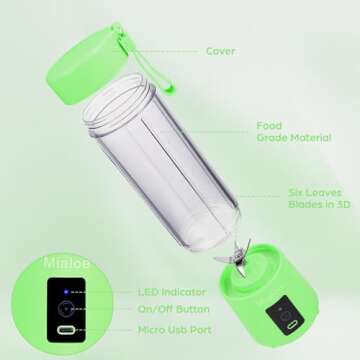 [Upgraded Version] Personal USB Juicer Cup ,Portable Juicer Blender ,Household Fruit Mixer - Six Blades in 3D,Rechargeable Fruit Mixing Machine For Baby Travel 380ml(green)
