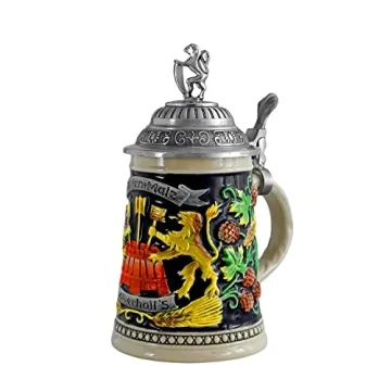 Introducing the exquisite 0.5L Beer Stein with Metal Pewter Lid, meticulously crafted to celebrate the rich traditions of German beer culture. This elegant beer stein not only serves as a functional drinking vessel but also doubles as a stunning decorative piece. With its authentic design featuring a detailed artificial painted relief pattern showcasing two majestic lions from Bayern, Germany, and a beautifully crafted pewter lid topped with a Bayern lion, this stein is a true masterpiece....