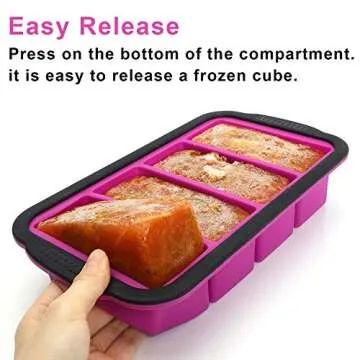 Crafted with separate compartments, each flat cube is easily removable. The flexible silicone material allows for simple release of the frozen contents, ensuring no food is left behind. All you need to do is wait for 3-4 minutes after removing it from the freezer or run warm water over the bottom for a quick release!