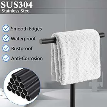 1 Pack Bath Hand Towel Holder Standing, SUS304 Stainless Steel Matte Black T-Shape Towel Bar Rack Stand, Tower Bar for Bathroom Kitchen Vanity Countertop