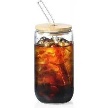 Charming 16 oz Glass Cups with Bamboo Lids & Straws - Perfect for Gifting!