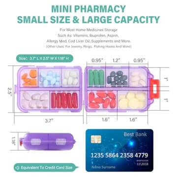 Show more Your health journey deserves the utmost care and organization, and our premium Pill Organizer Box is designed exactly for that. The vibrant purple color makes it not only functional but also stylish, allowing you to take your medications in a chic manner. Crafted with high-quality food-grade materials, this compact yet spacious pill organizer features 10 compartments—4 large and 6 small—that cater to a variety of medicine sizes, from vitamins to capsules. Each compartment is securely fastened and easily accessible, ensuring that your medications are well safeguarded during travel or everyday use.