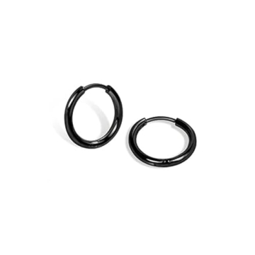 Whether you're wearing them as cartilage earrings, tragus earrings, helix earrings, or standard lobe earrings, these small hoop earrings radiate an exquisite elegance that can enhance any look. Their simple yet sophisticated design makes them a staple accessory for both men and women. Experience the perfect blend of style, comfort, and substance with the Black Hoop Earrings.