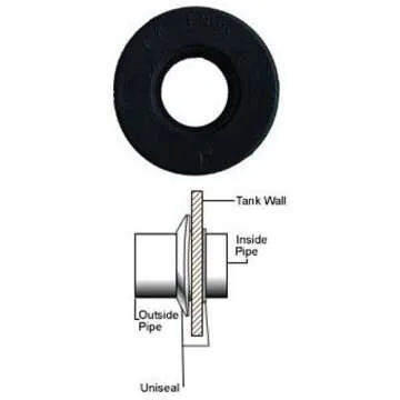 The 1'' UNISEAL Flexible Tank Adapter is compatible with tank wall thicknesses up to 3/8 inches.