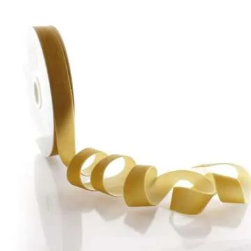 Show moreElevate your crafting and decorating endeavors with our exquisite 1" Velvet Ribbon Antique Gold. Measuring a generous 5 yards in length, this plush, single-sided ribbon is meticulously crafted from 100% premium nylon, ensuring a luxurious touch for all your seasonal projects. The warm antique gold hue brings a touch of vintage elegance, making it the perfect choice for holiday décor, wedding accents, or any special occasion. Whether you’re creating beautiful bows, wrapping gifts, or adding that finishing touch to your decorations, this ribbon promises to deliver both style and quality.