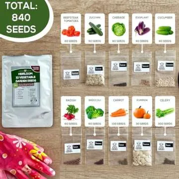 Show more Transform your garden into a flourishing paradise with our **10 Assorted Vegetable Seeds** variety pack. This exceptional collection contains over **840 heirloom garden seeds** to help you grow a diverse range of easy-to-cultivate vegetables, including vibrant Cucumber, meaty Beefsteak Tomato, robust Zucchini, crunchy Cabbage, delectable Eggplant, zesty Radish, nutrient-rich Broccoli, sweet Carrot, hearty Pumpkin, and aromatic Celery. Perfect for beginners and seasoned gardeners alike, this seed pack is tailored to meet all your gardening aspirations, making it an ideal choice whether you’re gardening on a patio, in raised beds, or utilizing indoor hydroponics.