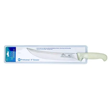 Show moreIntroducing the 10" German Steel Cimeter Knife, a professional-grade culinary essential that transforms your food prep experience! Crafted for both home cooks and seasoned chefs, this knife stands out with its exquisite German high-carbon steel blade designed for superior performance. The cimeter knife's unique curvature allows you to effortlessly break down large cuts of meat into smaller, manageable portions, making it an invaluable addition to your kitchen arsenal. Equipped with a sharp, hand-honed edge, this knife delivers precision and control, ensuring clean cuts without squashing or tearing the tissue. The off-white polypropylene handle provides a comfortable, non-slip grip that reduces wrist fatigue during prolonged use. Experience the perfect combination of efficiency and craftsmanship with this extraordinary tool that promises to meet all your meat preparation needs.