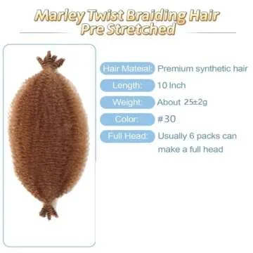 10 inch Marley Hair for Spring Twist Hair Passion Twist Hair Faux Locs Soft Locs Butterfly Locs Crochet Hair Short Marley Twist Braiding Hair Kinky Afro Twist Cuban Twist Hair Extensions(3Packs,30)