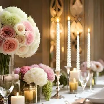 10 Inch Metallic White Spiral Taper Candles Set for Holiday Decor, 12 Pack Unscented Twisted Candlesticks, Dripelss Thin Tapered Candles for Wedding Dinner Party Ceremony Religious