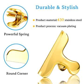 10 Pack Gold Chip Clips, Stainless Steel 3 Inch Heavy Duty Large Bag Clips for Coffee Snack Bread Potato Bags Kitchen &Office Usage Metal Clips (GSJ-10)